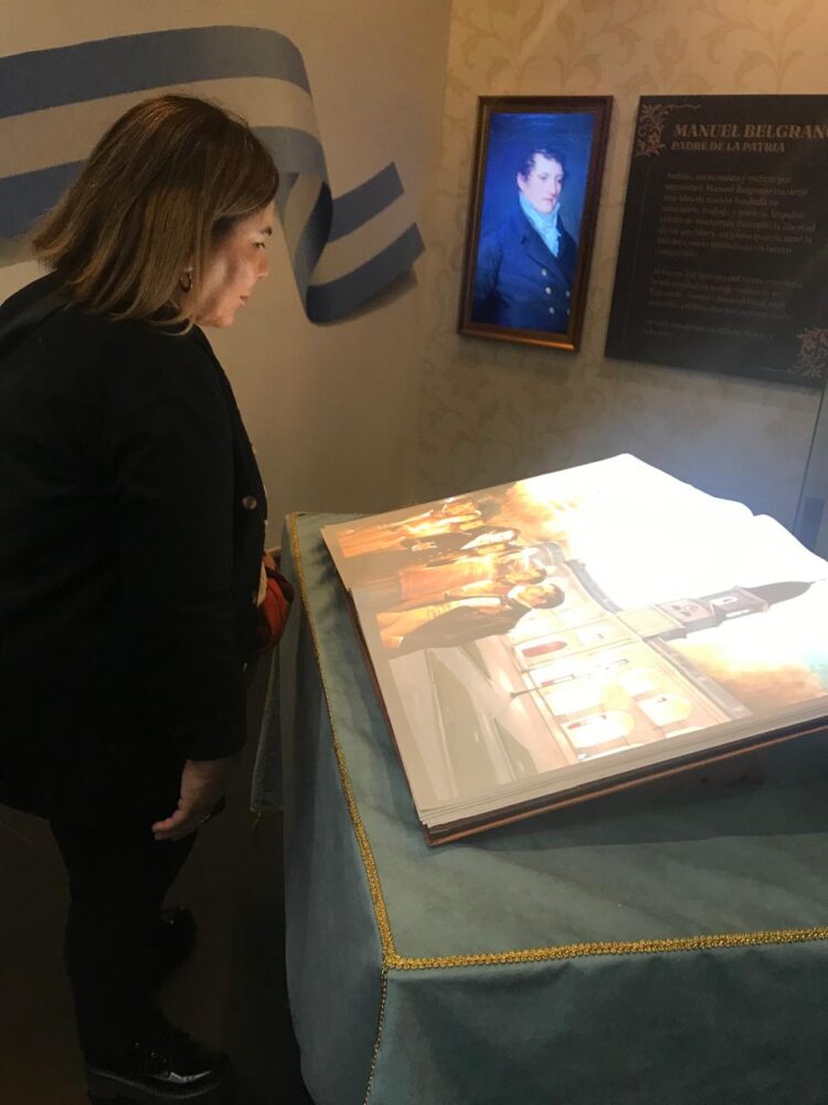 Al ingresar, el público se encontraba con la fachada de la Casa Histórica de Tucumán, símbolo de la Independencia Argentina. Dentro, un cuadro interactivo de Manuel Belgrano les daba la bienvenida, dirigiéndose directamente a cada visitante que se ubicaba frente a su retrato. Más adelante, un libro digital proyectaba la Batalla de Tucumán, mientras que una réplica artística del Salón de la Jura de la Independencia completaba un recorrido que combinó historia viva con tecnología.