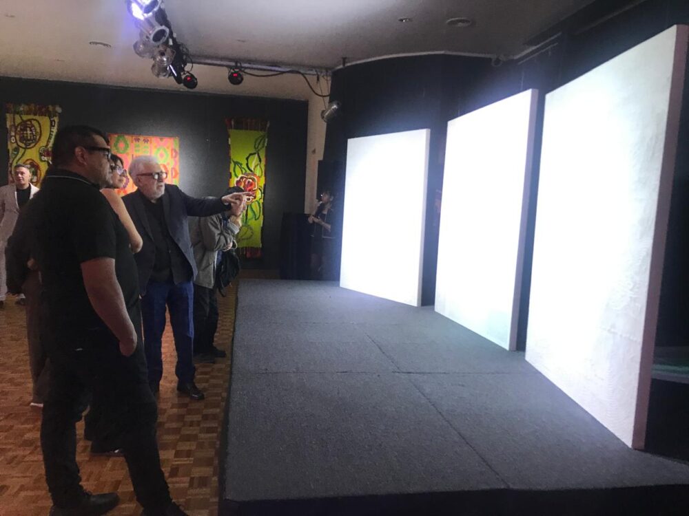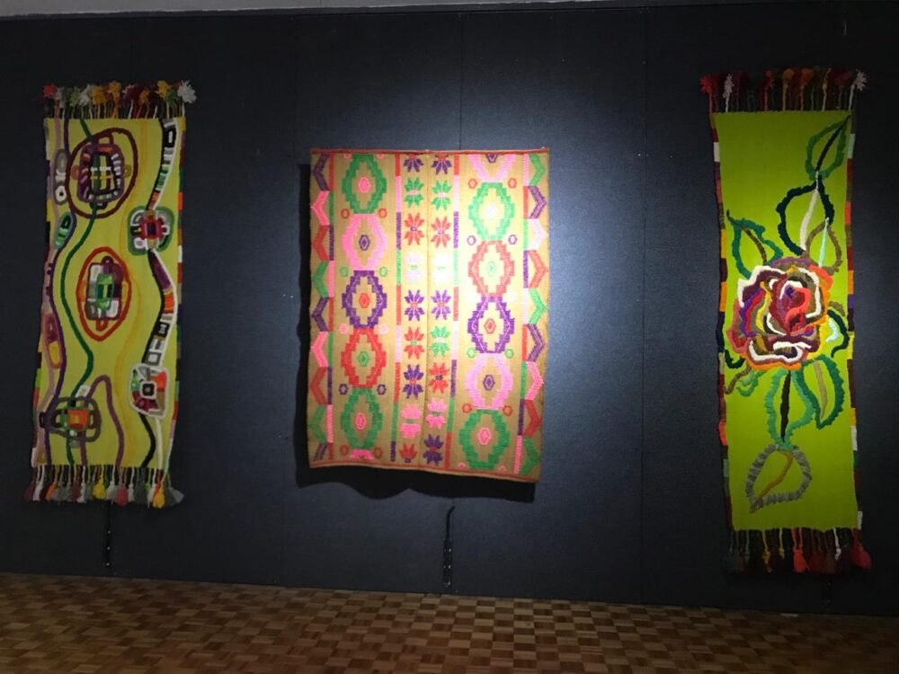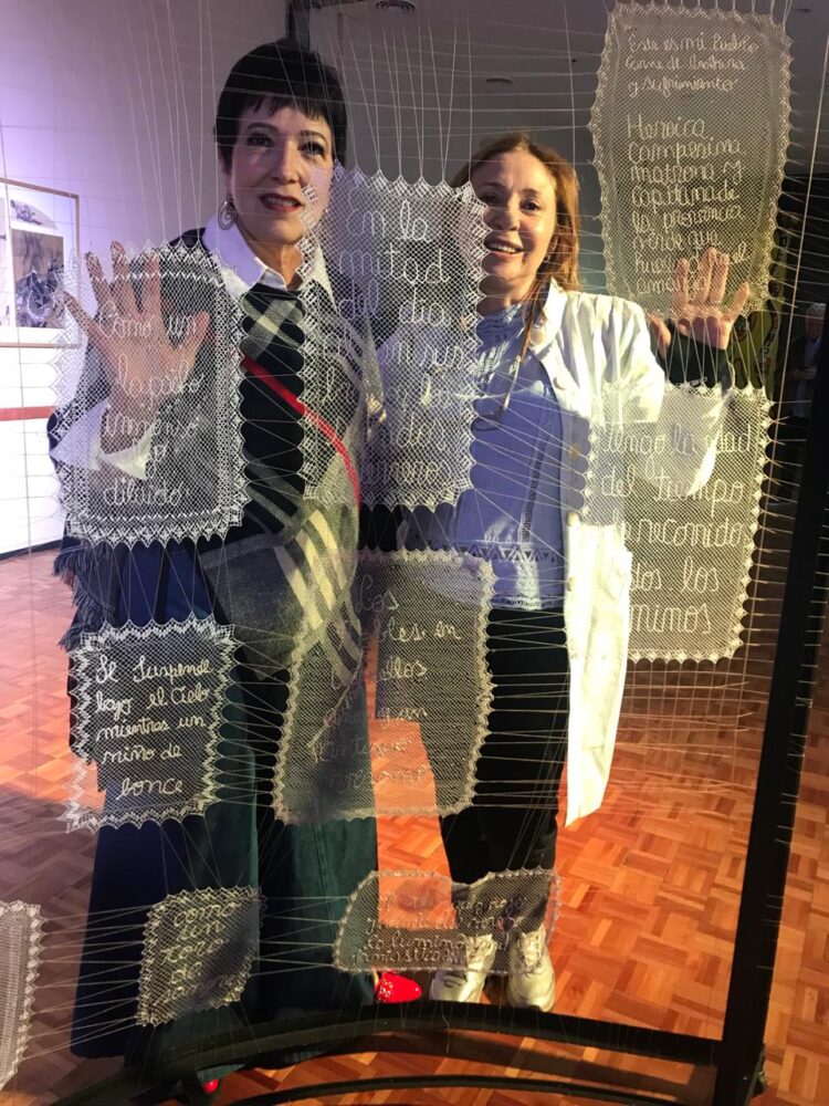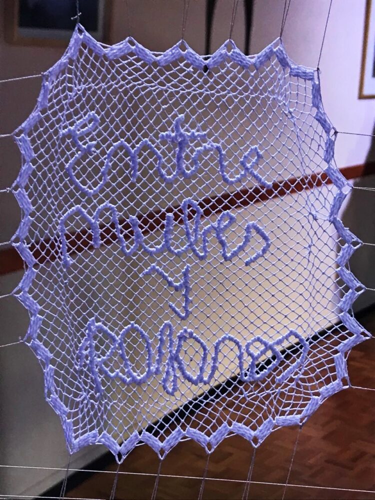 La propuesta reunió obras del artista Enrique Salvatierra, del colectivo Las Randeras del Cercado —acompañadas por la diseñadora e investigadora Alejandra Mizrahi— y poemas de Manuel Aldonate, en una trama donde la palabra se convierte en textura y el color en relato.