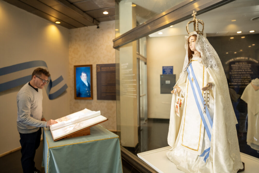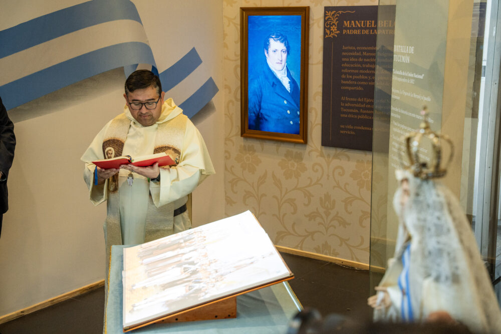 La conmemoración comenzó con un acto religioso, en el que el padre Matías Ledesma bendijo a los presentes frente a la imagen de la Virgen de la Merced, Generala del Ejército Argentino. El sacerdote también consagró un nuevo espacio en la Casa de Tucumán que exhibe un cuadro parlante de Manuel Belgrano y un libro interactivo que invita a profundizar en la gesta histórica.